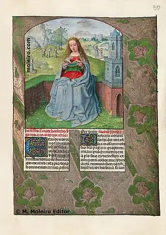 - ↑ Diane G. Scillia, Gerard David's St. Elisabeth of Hungary in the Hours of Isabella the Catholic, Cleveland, Studies in the History of Art, 7(2002), p.57.