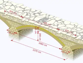 De kern van de bogen en pijlers bestaat uit een mengsel van mortel, puin en grote stenen uit de rivier.[17]