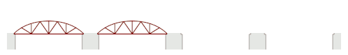 - zeer vlakke segmentbogen, bestaande uit dubbele, taps uitlopende tichelgewelven;