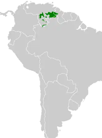 Deze soort komt voor op de tepuis van Venezuela en aangrenzende gebieden en telt vier ondersoorten:[2]