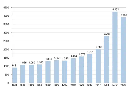 - Bronnen:NIS, Opm:1831 tot en met 1970=volkstellingen; 1976 = inwoneraantal op 31 december