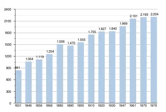 - Bronnen:NIS, Opm:1831 tot en met 1970=volkstellingen; 1976 = inwoneraantal op 31 december