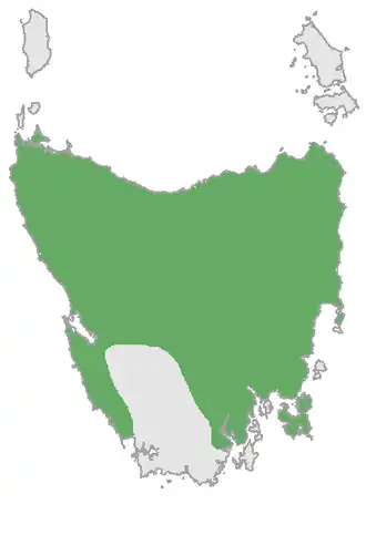 | Voormalig verspreidingsgebied van de buidelwolf op Tasmanië | |||||||||||||