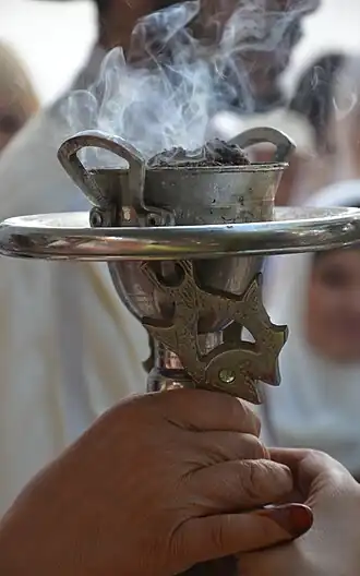 Ook bevat Bukhoor wierook. De wierook bestaat uit houtsnippers die doordrenkt zijn met geurende olie. Deze worden net als wierook in een brandertje verbrand, waarbij de geur vrijkomt.