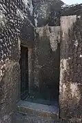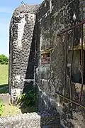 De toegang tot de bunker bevindt zicht in het noorden achter een schermmuur. De overige muurpartijen zijn opengewerkt door één schietgat in een nis voor het opstellen van een mitrailleur in het oosten, één schietgat in een nis in het westen, één schietgat gelijk met de buitenwand in het zuiden, één vals schietgat in een nis en één vals schietgat gelijk met de buitenwand.[7]