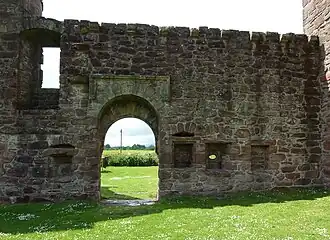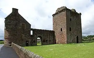 Burleigh Castle gezien vanuit het westen met links de donjon en rechts de zestiende-eeuwse hoektoren.