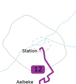 Buslijn 12 in Kortrijk verbindt de eindhaltes Station Kortrijk en Rollegem Aalbekestraat.