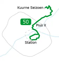 Buslijn 50 in Kortrijk verbindt de eindhaltes Station Kortrijk en Kuurne Seizoenwijk. Samen met lijn 51 vormt zij de voorstadslijn 5 die het centrum van Kortrijk verbindt met de Pius X-wijk en met Kuurne. Op die manier vormt dit een belangrijke verbinding tussen de binnenstad en het noordoosten van het stedelijk gebied waartoe Kuurne ook behoort. De lijn komt onder meer voorbij het winkelcentrum K in Kortrijk, de Sint-Maartenskliniek, gaat doorheen de Pius X-wijk, steekt de R8 over en eindigt in de Seizoenwijk in Kuurne.