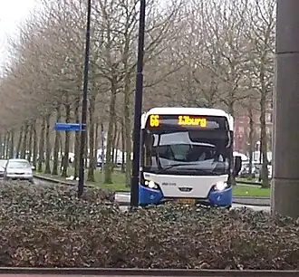 Bus 66 richting IJburg, ter hoogte van Station Ganzenhoef, Amsterdam-Zuidoost. (uit de verte genomen)