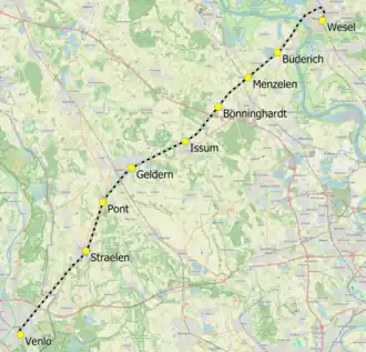 Op instigatie van de Nederlandse Spoorwegen werd op 3 oktober 1936 het traject Venlo - Straelen na slechts 62 jaar stilgelegd. Stukje bij beetje werden ook de meeste delen van het resterende traject van Straelen via Wesel naar Haltern buiten dienst gesteld en ontmanteld.