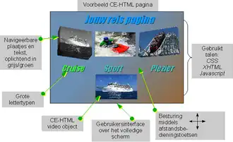 Verder is het moeilijk om internetpagina's eenduidig voor CE-apparaten beschikbaar te maken doordat deze apparaten vaak verschillende eigenschappen hebben. Denk hierbij aan verschillende schermgroottes, afstandsbedieningen en audio/video-codecs.