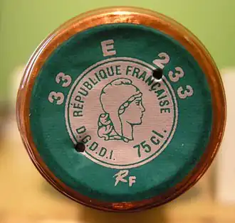 | Donker rood | Komt in de plaats voor wijn met de groen en blauw capsule (per decreet van 5 juli 2011), maar niet voor mousserende wijn met een oorsprong benaming en natuurlijke zoete wijnen met AOC en daarmee fiscaal gelijkgesteld dranken. |