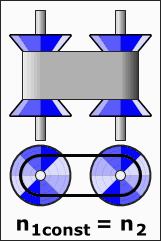 - Duwband op verschuifbare conische poelies: