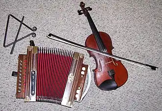 - Zydeco-muziek: zwarte muzikanten, Frans- en Engelstalig, meer blues-invloeden, bezetting: accordeon, sax, wasbord, drums, bas, gitaar.