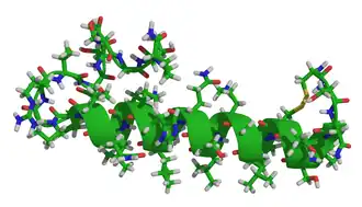 Calcitonine is een hormoon met een lineaire polypeptidestructuur met 32 aminozuren en een molmassa van circa 3700 D, ontdekt in 1962 door D.H. Copp en B. Cheney.