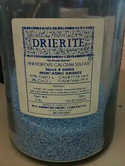 Calciumsulfaat is onder de merknaam "Drierite" verkocht als droogmiddel. Aan het calciumsulfaat was een kleine hoeveelheid kobalt(II)chloride toegevoegd. Deze stof is in een droge omgeving (het droogmiddel werkt nog goed) blauw. In een vochtige omgeving (het droogmiddel is uitgewerkt) is deze stof zwak roze gekleurd.