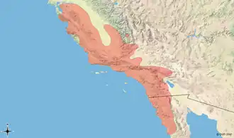 | Verspreidingsgebied in het rood. | |||||||||||||||||