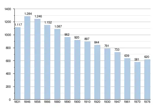 - Bronnen:NIS, Opm:1831 tot en met 1970=volkstellingen; 1976 = inwoneraantal op 31 december