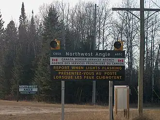 - ↑ Twee kleine stukjes land ten westen ervan (Buffalo Bay Point), en de Northwest Angle begrensd door de provincie Manitoba Canada en Lake of the Woods.
