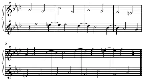 De imitaties kunnen contrapuntische afleidingen zijn van de leidende stem.