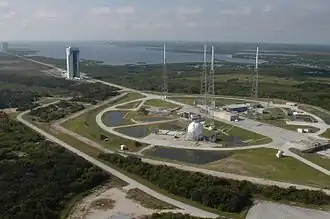 | Luchtfoto van lanceercomplex 41 uit 2005 met links ervan de Vertical Integration Facility. | |
