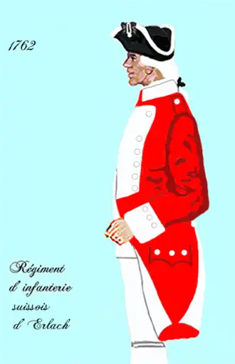 - ↑ Hoewel Zwitserland de grootste leverancier was van troepen voor de Franse koning, waren er ook veel regimenten met huurlingen uit andere landen. Zo huurde Frankrijk Deense regimenten, Ierse (waarvan ook veel Schotten deel uitmaakten), Waalse, en Duitse.