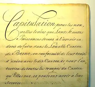Zwitserse autoriteiten sloten capitulaties af met veel landen. Enkele belangrijke zijn Frankrijk, de Kerkelijke Staat en de Nederlanden.