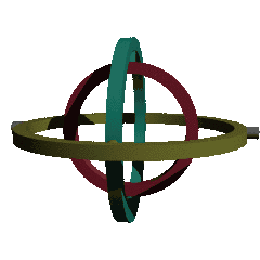Er kan eventueel een derde ring worden toegevoegd waarvan de as loodrecht op beide voorgaande staat. Hierdoor kan het opgehangen voorwerp vrijelijk roteren om twee, bij drie ringen drie, assen. Als het zwaartepunt excentrisch ligt ten opzichte van het middelpunt van de ringen zal het opgehangen voorwerp steeds rechtop blijven hangen ondanks bewegingen van de buitenste ring die vastzit aan bijvoorbeeld een boot of vliegtuig.