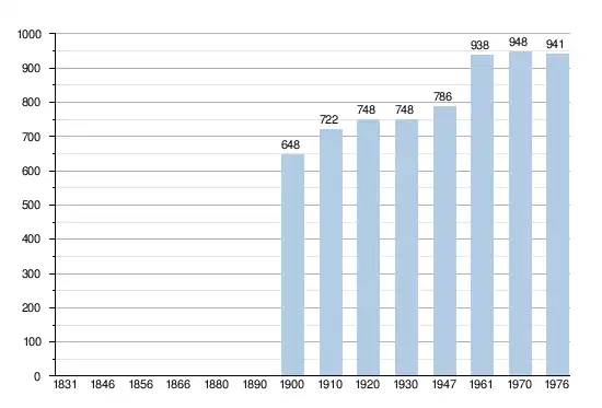 - Bronnen:NIS, Opm:1831 tot en met 1970=volkstellingen, 1976= inwoneraantal op 31 december