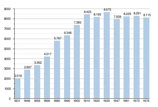 - Bronnen:NIS, Opm:1831 tot en met 1970=volkstellingen, inwoneraantal op 31 december