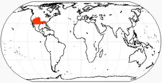 | Verspreidingsgebied van Carpocyon, gebaseerd op fossiele vondsten | |||||||||||||