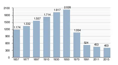 - Bron: INE, 1857-2011: volkstellingen