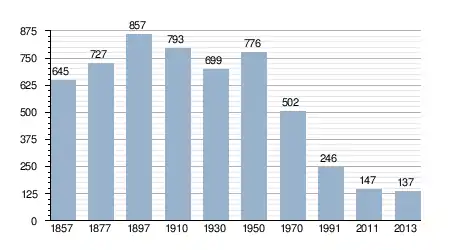 - Bron: INE, 1857-2011: volkstellingen