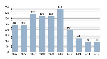 - Bron: INE, 1857-2011: volkstellingen