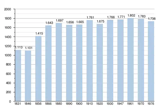 - Bronnen:NIS, Opm:1831 tot en met 1970=volkstellingen, 1976= inwoneraantal op 31 december