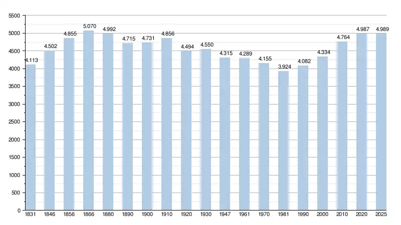 Alle historische gegevens hebben betrekking op de huidige gemeente, inclusief deelgemeenten, zoals ontstaan na de fusie van 1 januari 1977.