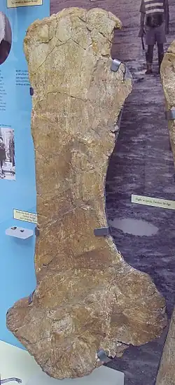 - ↑ Hulke, J.W. (1874). Note on a very large saurian limb-bone adapted for progression upon land, from the Kimmeridge clay of Weymouth, Dorset. Quarterly Journal of the Geological Society of London 30 (1-4): 16-17. DOI:10.1144/GSL.JGS.1874.030.01-04.17.