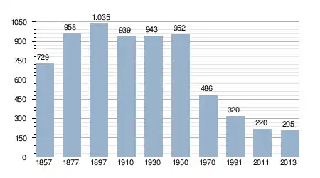 - Bron: INE, 1857-2011: volkstellingen