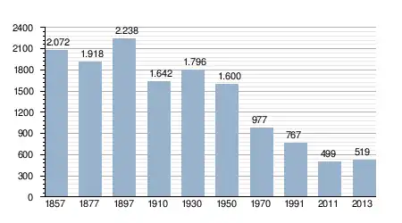 - Bron: INE, 1857-2011: volkstellingen