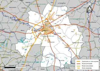 De onderstaande kaart toont de ligging van Châteauroux met de belangrijkste infrastructuur en aangrenzende gemeenten.