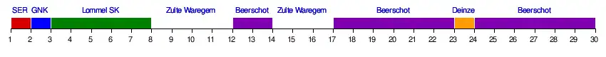 | 4 | Lommel SK | 30 | 15 | 7 | 8 | 52 | 51 | 31 | +20 | |