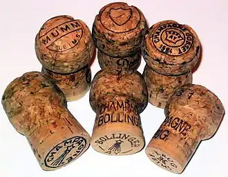 Wanneer de wijn zijn laatste toevoeging heeft gehad wordt de fles met de definitieve kurk afgesloten. Een extra dikke kurk wordt samengeperst en voor twee derde deel in de hals van de zwaar uitgevoerde fles gestopt. Om te voorkomen dat de kurk er alsnog af kan schieten, wordt deze vastgezet met een stukje ijzerdraad, de muselet (draadkorfje). Alleen het uitstekende deel van de kurk kan nu nog uitzetten. Zo komt de "champagnekurk" na het ontkurken van de fles aan zijn typische paddenstoelvorm.