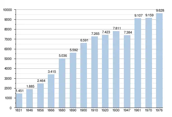 - Bron:NIS - Opm:1831 t/m 1970=volkstellingen; 1976= inwoneraantal op 31 december