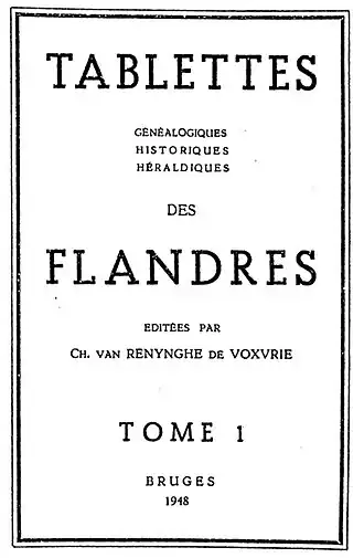 - L'épitaphier de Bruges, in: Tablettes des Flandres, T. I, 1948 - T. II, 1949 - T. III, 1950 - T. V, 1953