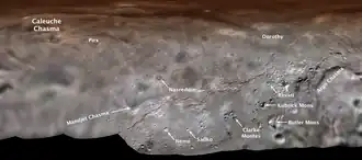 - ↑ International Astronomical Union. Pluto's largest moon, Charon, gets its first official feature names. Geraadpleegd 7 februari 2023. Gearchiveerd op 15 maart 2023.