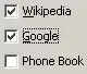 In sommige zoekfilters kan een selectievakje zowel een vinkje als een kruisje bevatten, die respectievelijk 'wel' en 'niet' betekenen. Daarnaast kan het selectievakje ook leeg zijn om aan te geven dat de eigenschap buiten beschouwing gelaten moet worden.