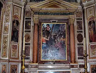 - De kapel van Sint Andreas. Het martelaarschap van deze heilige is afgebeeld op het altaarschilderij. Deze kapel staat op de locatie waar voorheen de kleine kerk Sant'Andrea della Strada had gestaan, die evenals de Santa Maria della Strada werd afgebroken om plaats te bieden voor de bouw van de Gesù.