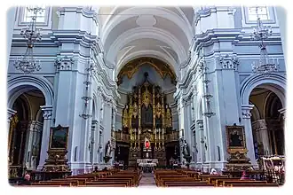De 18e-eeuwse kerk is in Siciliaanse barokstijl. De kerk is toegewijd aan de aartsengel Michaël. Het kerkschip telt drie beuken in een Latijns kruis ingebed. Aan de ingang leidt een dubbele marmeren trap naar de eerste verdieping van de kerk. De wijwatervaten zijn van gekleurd marmer. Een van de zijaltaren is toegewijd aan de Annunciatie; het schilderij boven dit zijaltaar is van Guglielmo Borremans uit de Zuidelijke Nederlanden.