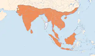 - C. s. intermedius: van Bangladesh en Myanmar tot zuidelijk Thailand, Indochina en Malakka.