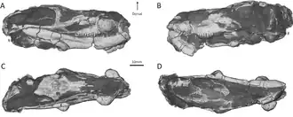 Het holotype is SAM-PK-K-8797, een gedeeltelijk skelet met schedel, onderkaken, bekken en een stuk linkerdijbeen.